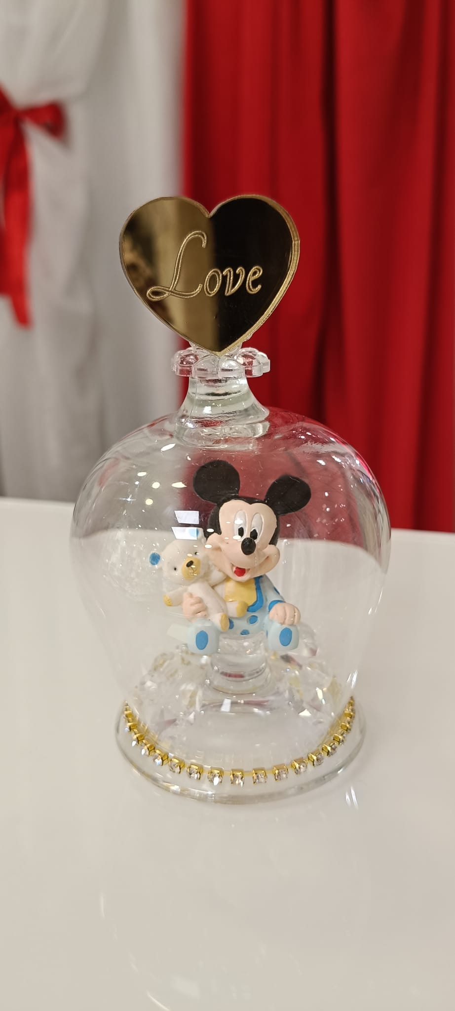 Bomboniera-cupola vetro topolino resina celeste-cm12x7