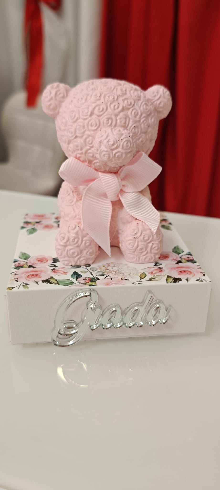 Bomboniera Orso Rosa su Scatola Personalizzata – cm10x8