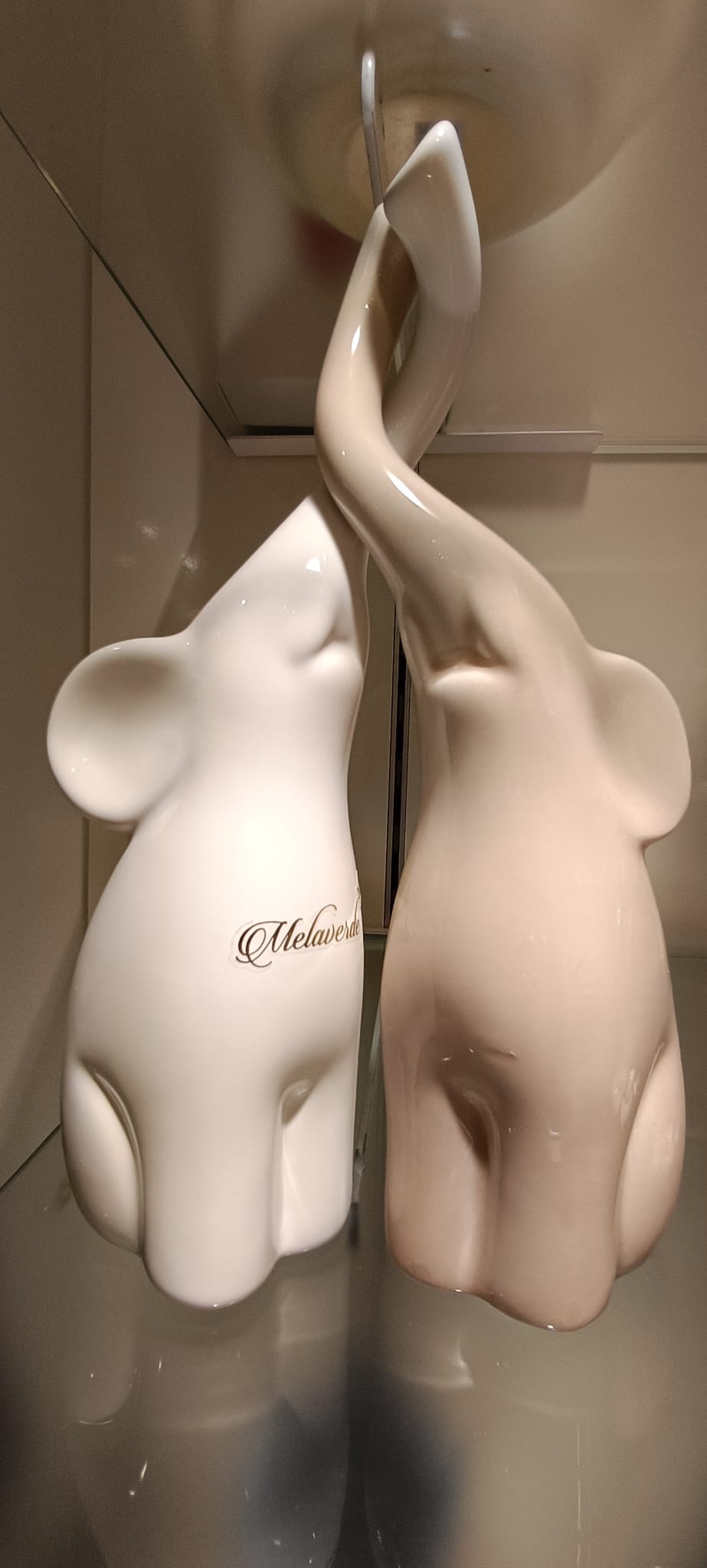 Coppia di Elefanti Melaverde in Capo di Monte – Bianco e Tortora – cm25x6