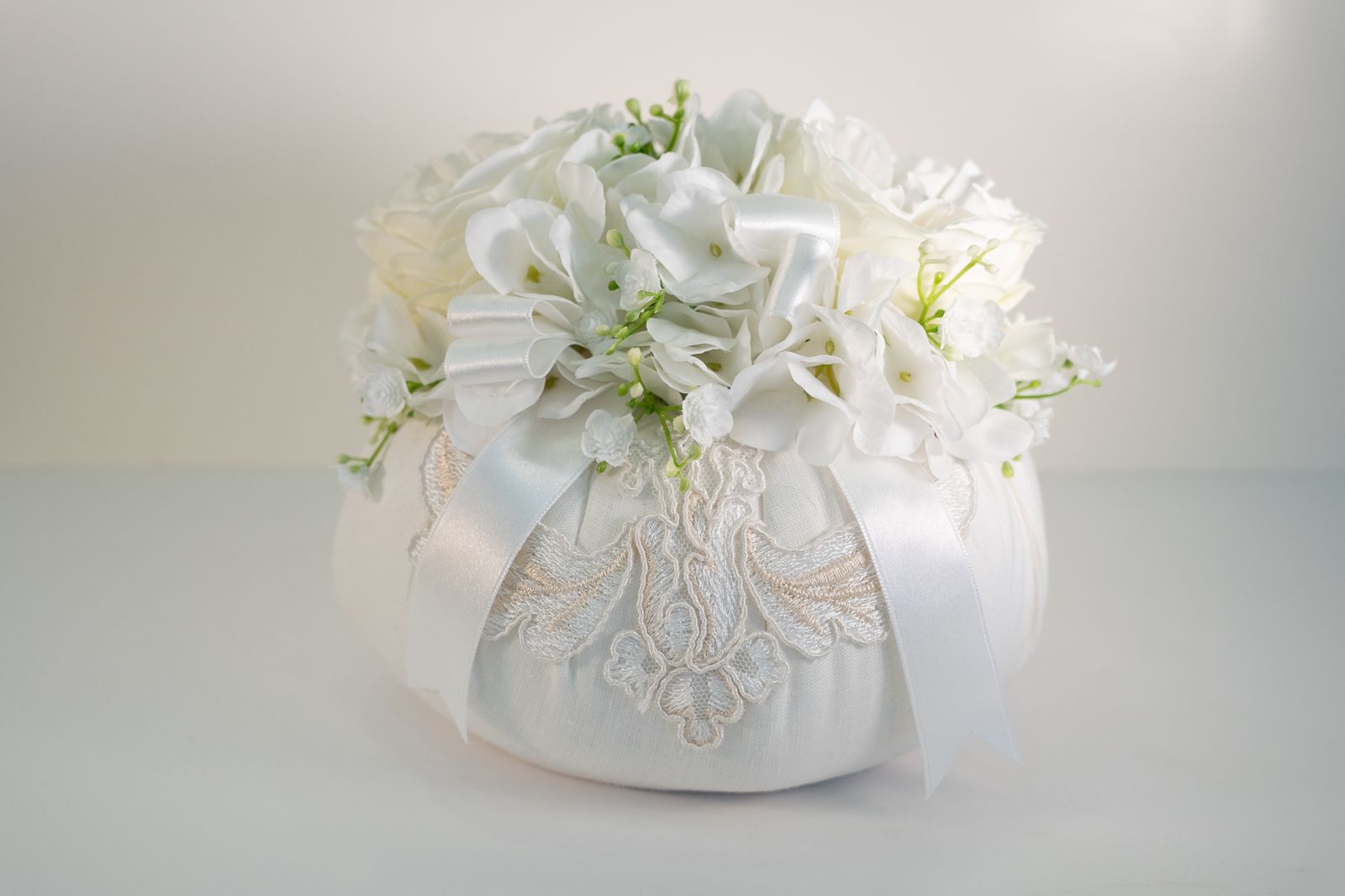 Cuscino Rotondo 20×20 Ricamo Champagne – FIori di Lena