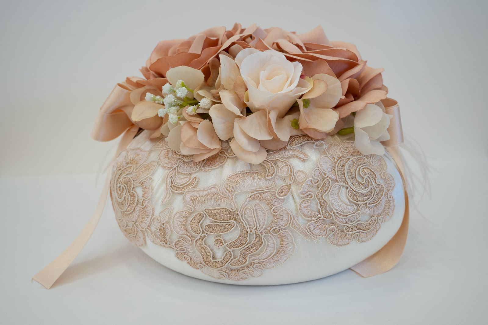 Cuscino Rotondo 22×20 con Ricamo – Fiori di Lena