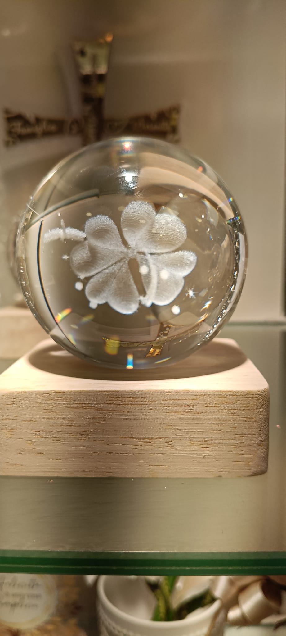 Bomboniera-Sfera a Led Quadrifoglio cm8x10