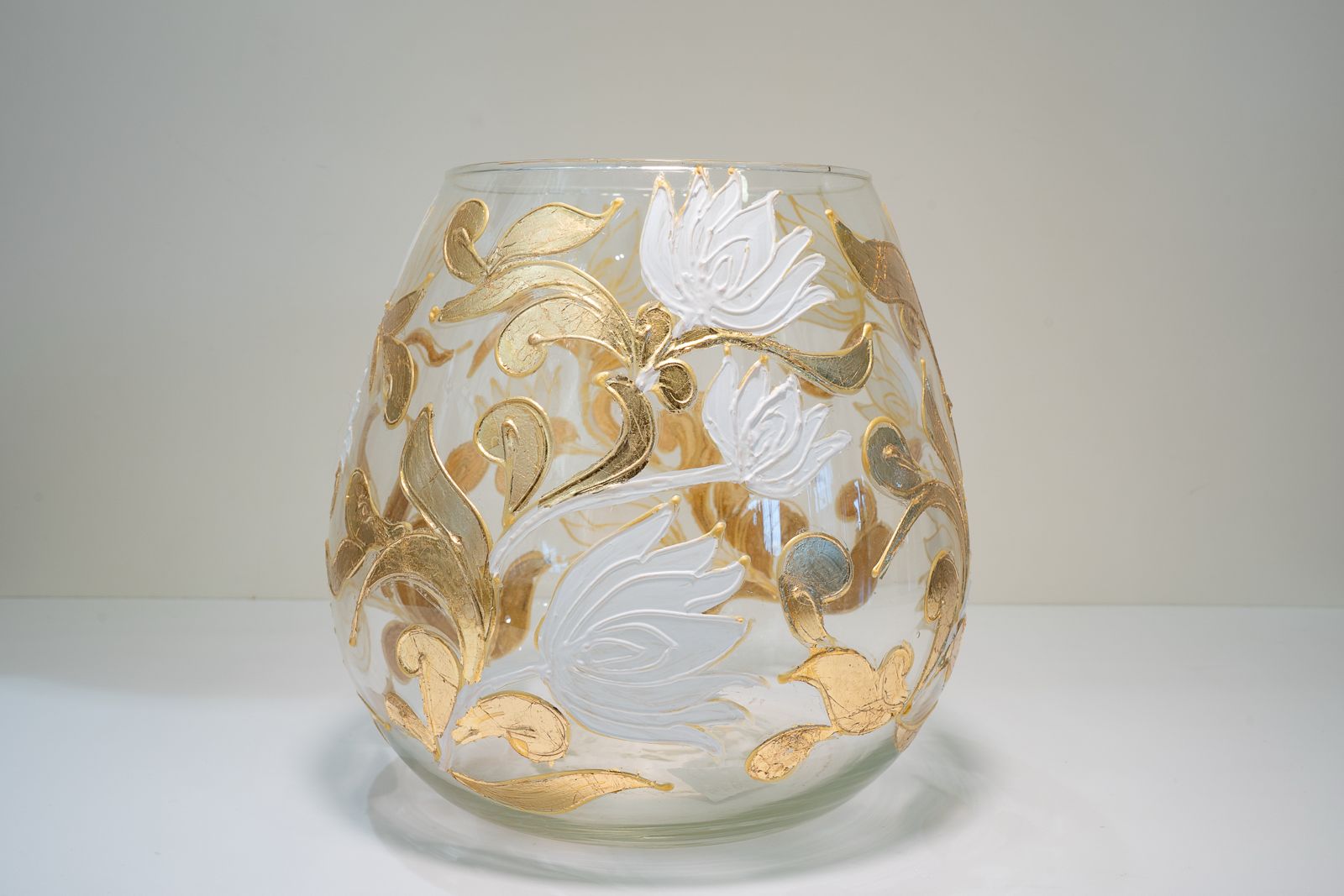 Vaso con finiture Dorate 22×21 – Gemi Glass